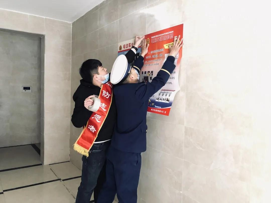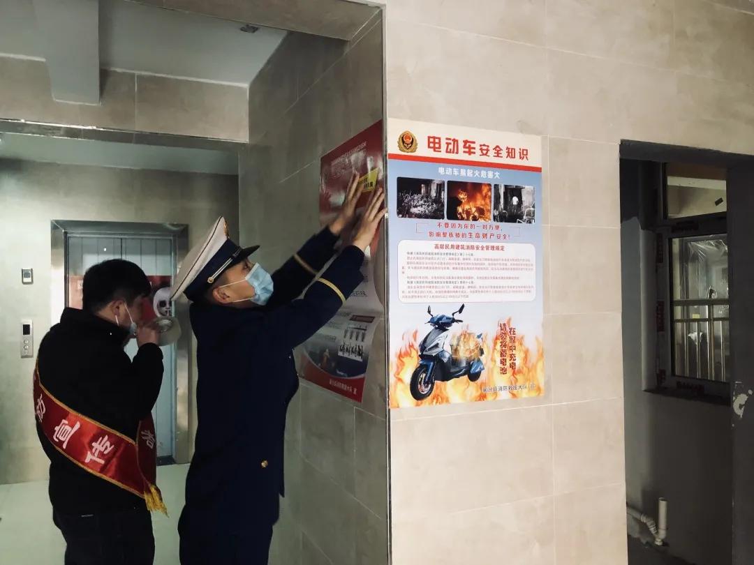 活动中,消防宣传人员和志愿者们进行地毯式“扫楼”行动,挨个楼层查看是否存在电动车进楼入户充电及停放、楼道内乱堆放杂物等现象,主动帮助居民清理火患,并在电梯口、单元门口张贴家庭防火、电动车安全等主题海报,时刻提醒居民注意安全。