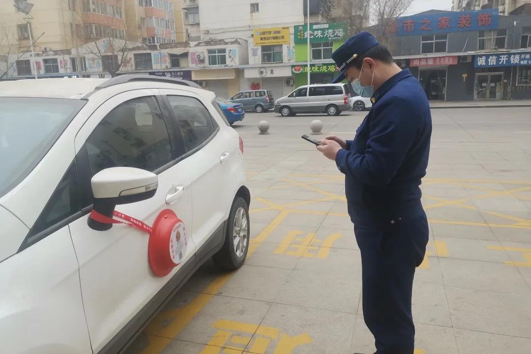 1月20日上午,侯马市一家商场门前,消防监督执法人员将脸盆状的“电子告知单”贴在了一辆私家车车门外,因该车违规停在了消防通道上。连日来,侯马经济开发区消防救援大队积极开展“生命通道”专项治理行动,以宣传和处罚并行的方式,切实落实消防通道管理工作,整治违规占用、堵塞消防通道的违法行为。