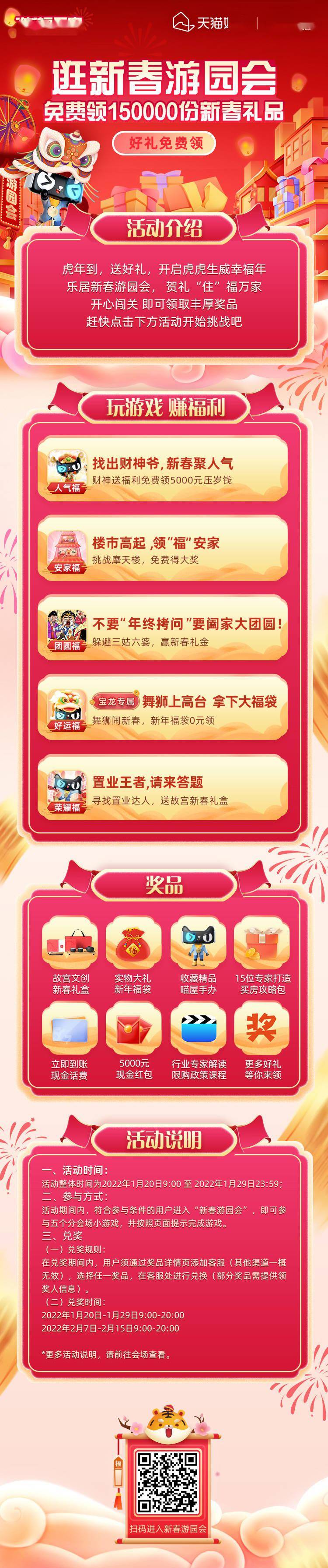 2022春节不打烊,天猫好房新春置业季,为更好服务购房群体,天猫好房新春期间将推出砍价抢补贴和专车看房、新春福袋等福利,还有新春游园会,免费领取150000份新春礼品!上天猫,搜索天猫好房或者乐居房产旗舰店,有机会获得更多大额专属购房优惠。