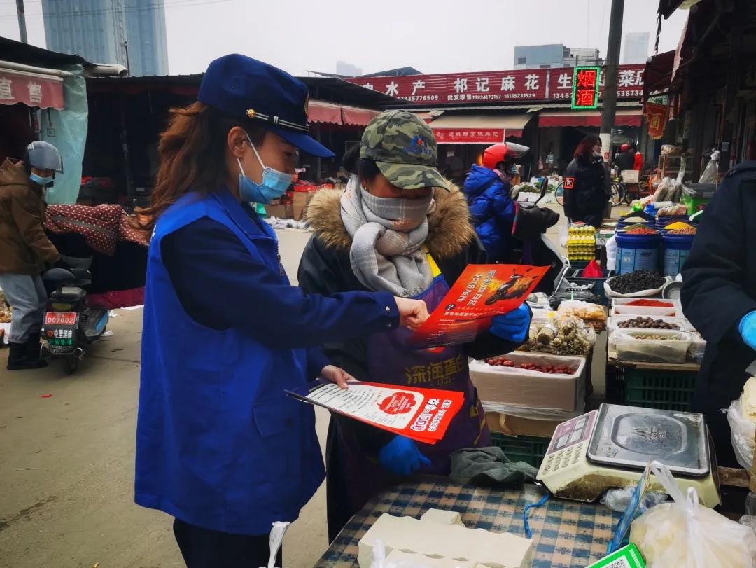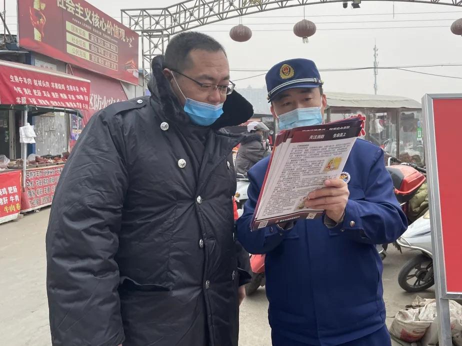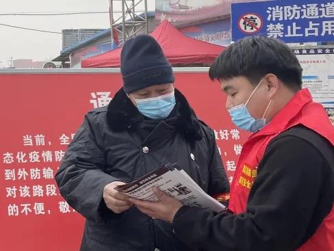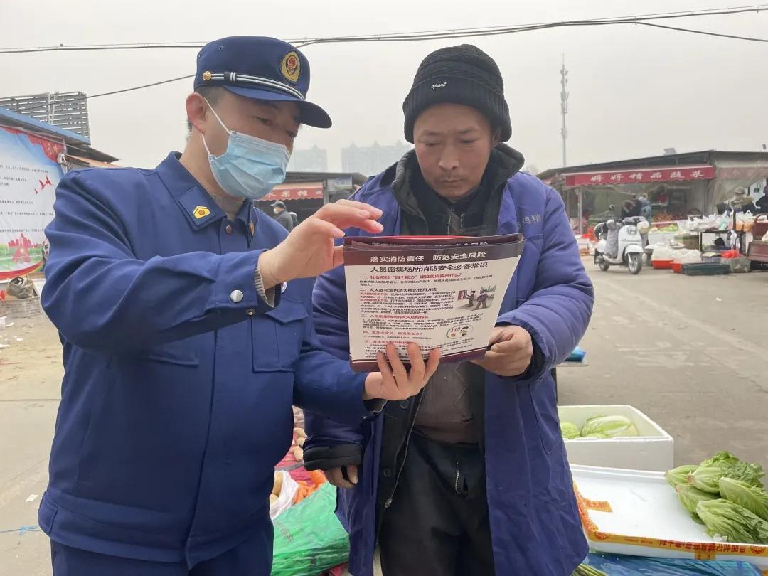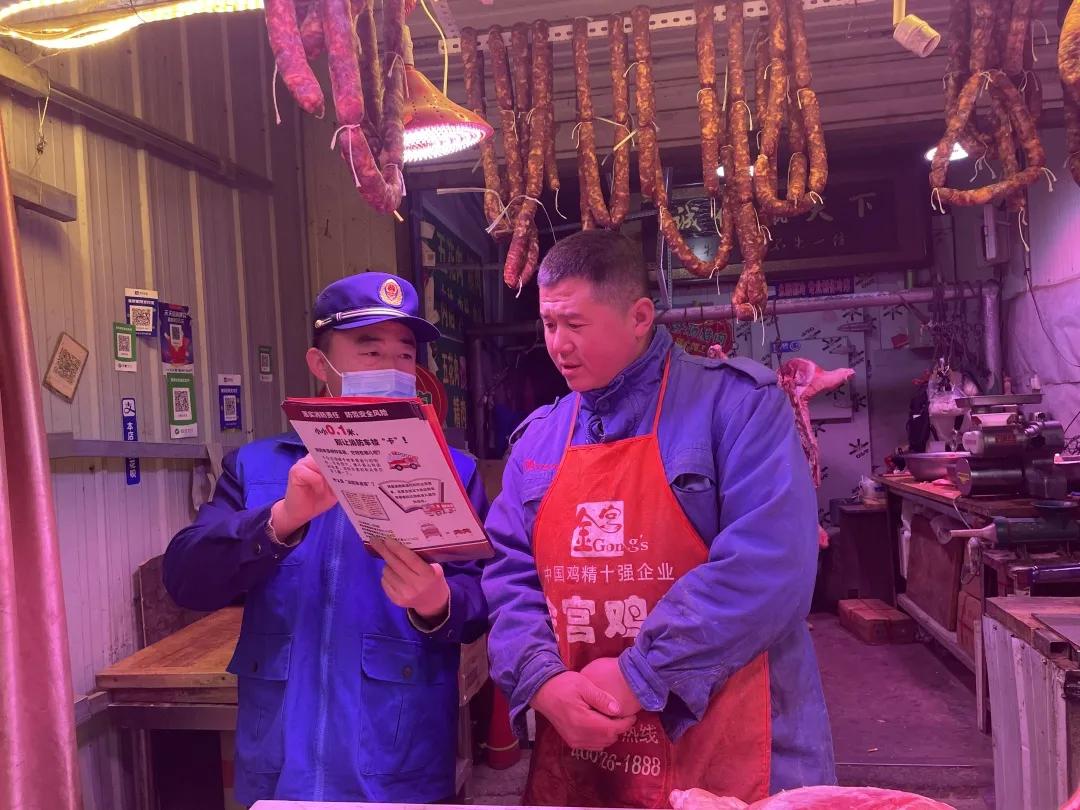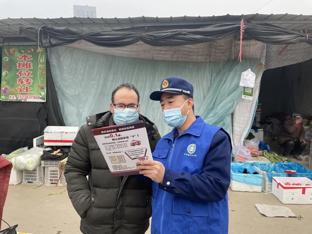 “阿姨,送您一件围裙,记得厨房用火不离人哦!”宣传人员将印有消防字样的围裙分发给前来买菜、买肉的市民,提醒他们时刻注意安全!“大哥,市场是人员密集场所,不能私拉乱接电源线,也不能超负荷用电……”在一家肉铺门口,宣传人员将用电用气安全的彩页递到了店主手里。“姐,您看前面是消防通道,咱的菜筐子往后挪一挪,可不敢占道经营……”宣传人员还当场指出部分商铺存在的占用消防通道、货物堆砌太高等安全隐患,并指导他们现场整改。