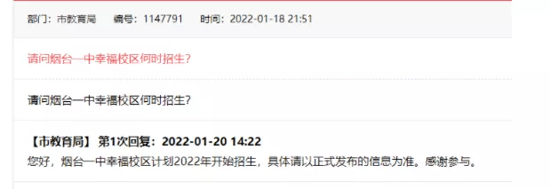 2020年8月11日烟台一中新校区规划建筑设计方案公示,该项目 位于芝罘区幸福外环路以东,幸福中路以北,福源南路以南区域,占地170亩。学校按最高标准设置60个班,每班50人, 可容纳3000名学生。