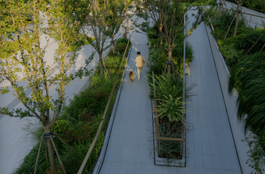园区小景的细节往往被业主忽视,银杏树杈的胸径竟然也有讲究,项目愣是将18公分换成了22公分,为的就是让业主走到树下不易碰头;