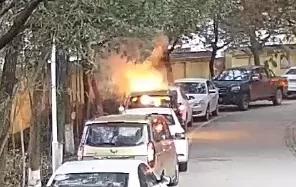 一辆小汽车突然发生自燃