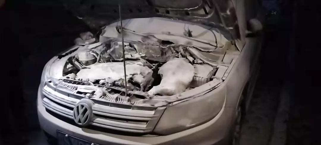 看到汽车着火后