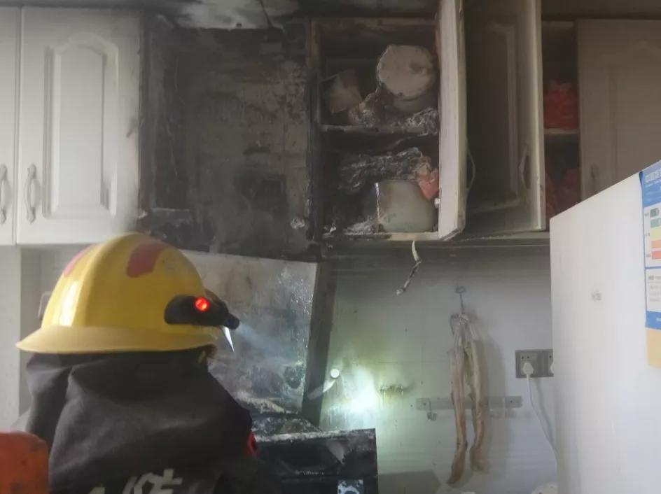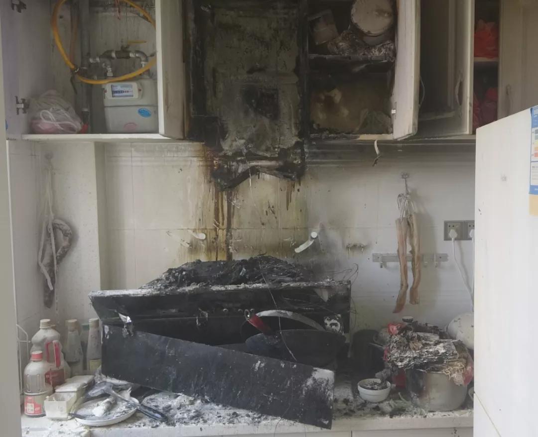 一户主在家做饭时油锅突然起火