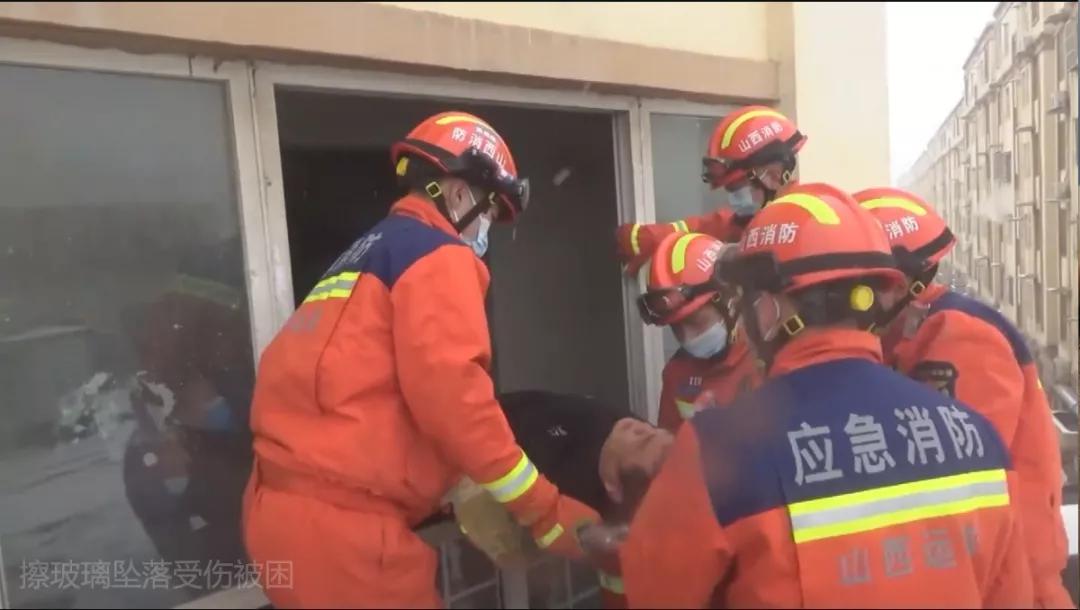 1月23日9时32分,山西省运城市消防救援支队119指挥中心,接到求救电话称,位于运城市空港南区幸福小镇一男子在家擦窗户,不慎从五楼跌落至二楼楼顶,受伤被困,急需救援。
