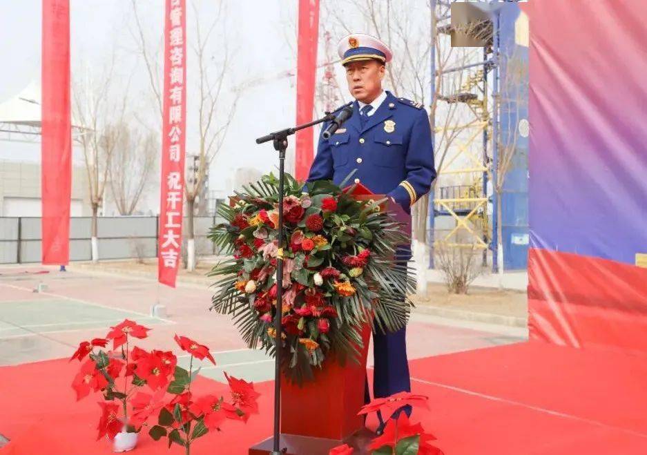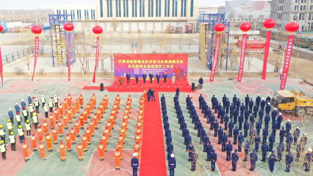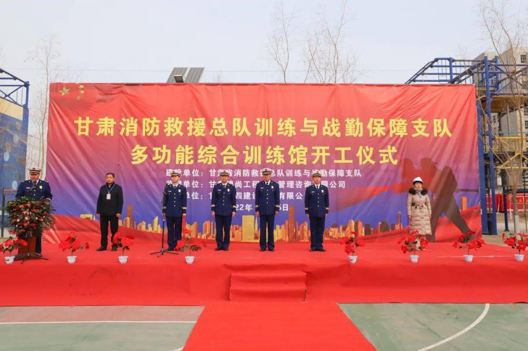 张鸿斌致辞并宣布项目开工,他表示,多功能综合训练馆建设项目是训保支队践行提质升级、科学发展工作思路的一项重要举措,建成使用后将以“消防员为第一要位、培育优秀新生力量”为引领,拓宽训练功能,改善训练环境,完善训练保障,必将促进甘肃消防教学培训工作水平全面提升,推动全省消防救援队伍建设发展迈上一个崭新的台阶。