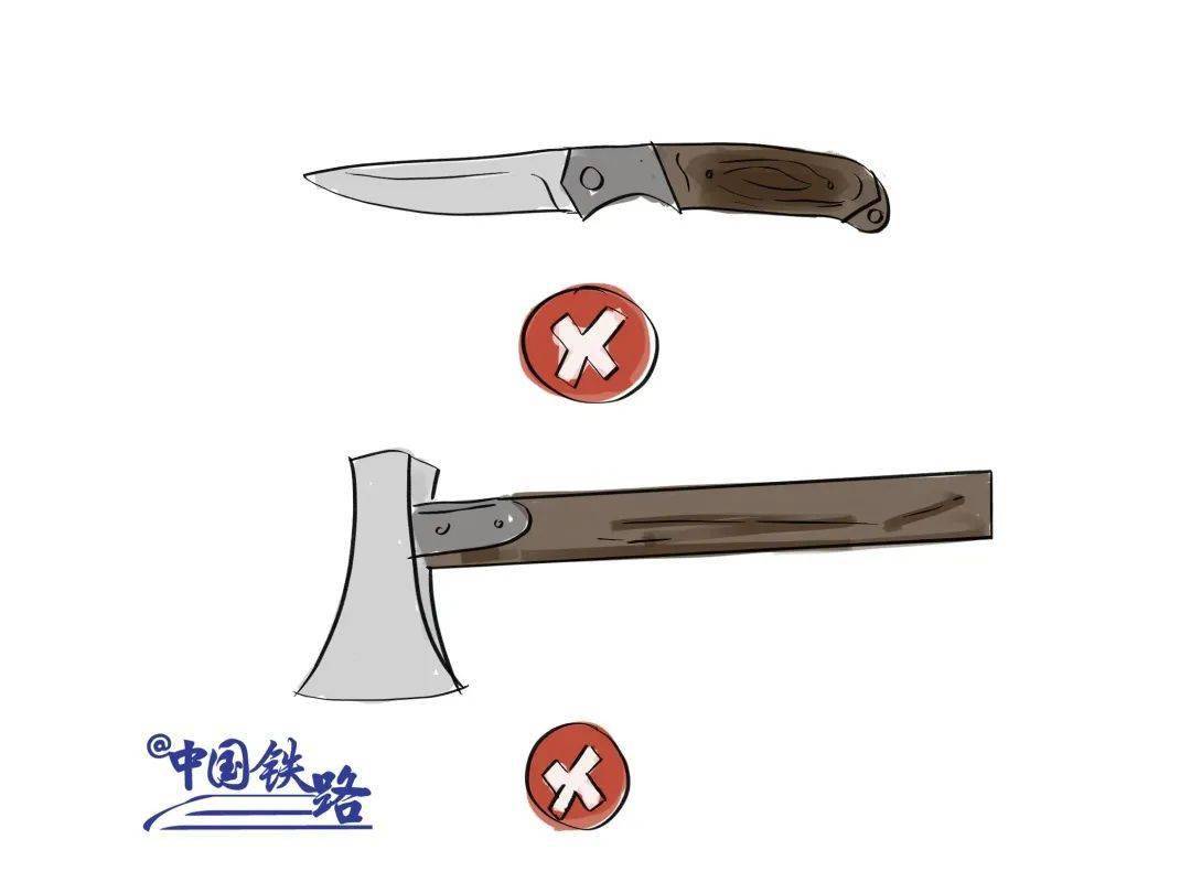 水果刀、菜刀、屠宰刀、弹簧刀、多功能折叠刀、工艺刀等可能危及旅客人身安全的刀具,都不能带上火车。