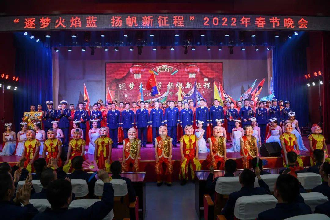 凯歌声中抒壮志,平安消防平安歌。在新春佳节到来之际,1月27日晚,甘肃省消防救援总队在训练与战勤保障支队举行“逐梦火焰蓝 扬帆新征程”2022年春节晚会。蔡建波政委、陆军总队长、张立强副总队长出席晚会,兰州支队、训保支队、新区支队相关领导及新训消防员现场观看晚会。