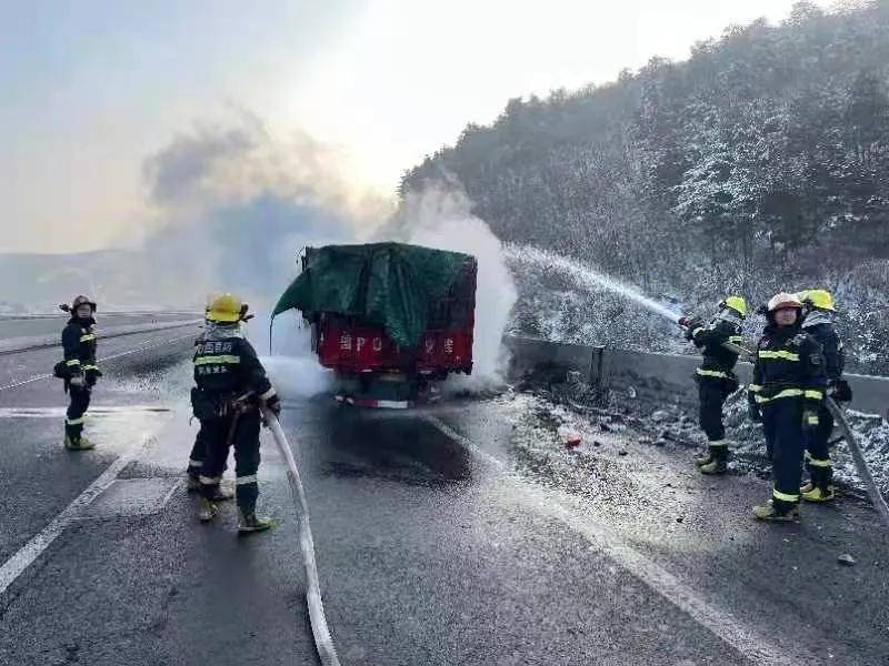 根据现场情况,指挥员立即下令:警戒组同交警对现场进行警戒,战斗组单干线出两支水枪对着火位置进行灭火,08时48分火势得到有效控制,随后指挥员又命令战斗员用铁锹将煤炭刨开,灭掉残火。经检查确认没有残火和复燃可能后,将现场移交给交警,消防救援人员收拾器材安全归队。