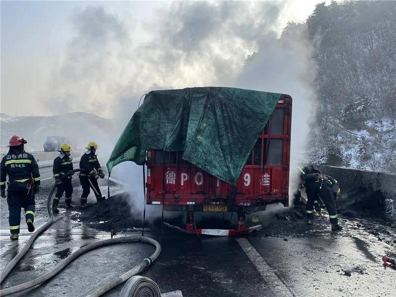 原标题:半挂车行驶中自燃—— 阳泉消防及时救援