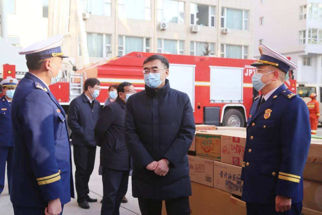 1月29日上午,在新春佳节到来之际,忻州市委副书记、代市长李建国一行亲切看望慰问奋战在一线的消防救援人员,并代表市委、市政府向坚守岗位,战斗在应急救援一线的全体消防救援人员,致以新春的问候和节日的祝福,并送上慰问品。市委常委、常务副市长赵新年,市政府秘书长张艮生,市总工会党组书记栗艳秋,市应急局局长杨彦清,市能源局局长郭建平等一同看望慰问。