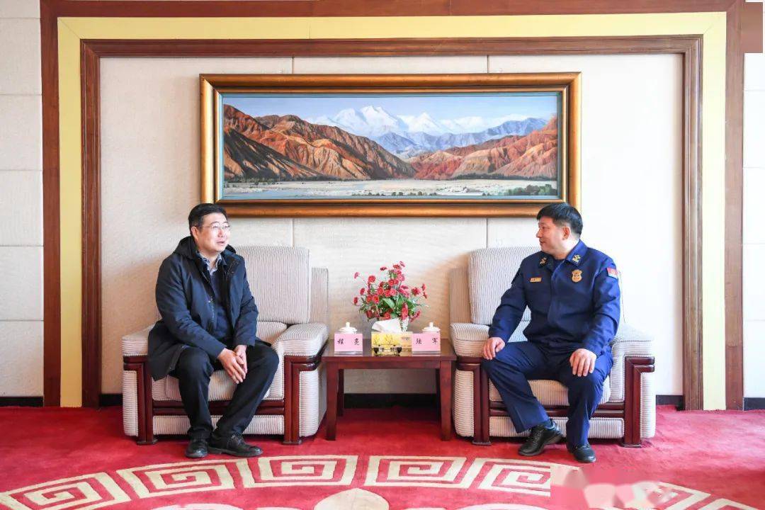 1月29日,陆军总队长与省文物局局长程亮进行座谈,会商我省文物系统消防安全工作。副总队长申立新、戚文军,省文物局副局长陈于柱,总队防火监督处和省文物局安全督察处有关人员一同参加。