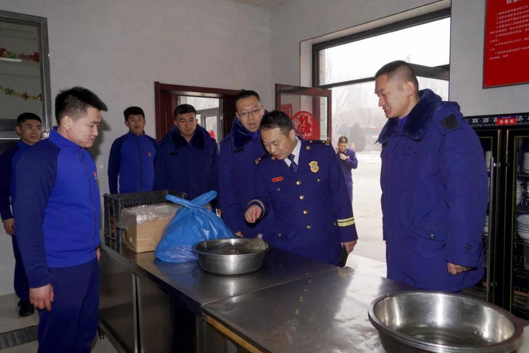 当日,郭连鹏副支队长先后深入大学城产业园消防救援大队、龙湖街特勤消防救援站、战勤保障大队等基层单位,对春节期间饮食安排、食材物资储备、卫生防疫、文化生活安排情况部署等各项工作进行详细了解,并实地深入各单位食堂操作间查看卫生情况。
