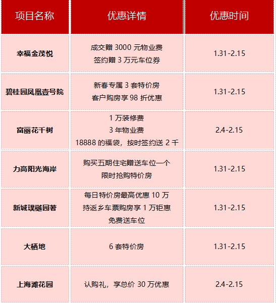 为了在2022虎年新春迎来“开门红”,许多热门楼盘推出了春节期间限定的专属优惠活动: