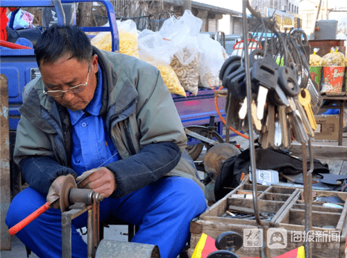 赶大集的乐趣不止在美食上面,在这里还能见到许多不常见的手艺活。补鞋和配钥匙就是其中一种,你说平时要想找到他们,还真不是个容易事,首先要对城市的各个街道了熟于心,因为这活儿又脏又累,挣钱也不多,所以年轻人根本不愿意去学,只有上了年纪的老手艺人才坚守在乡村的集市上,保存并延续着这门颇具年代感的技艺。即便如此,这道独特的风景也在逐渐淡出人们的视野。