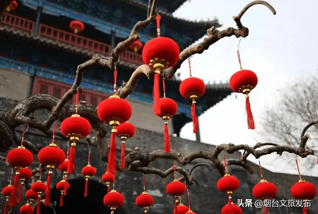 此时的毓璜顶公园,火红灯笼正高挂,五彩飘带齐飞扬,年味浓浓。过年就来这里,探寻年味的印迹,感受烟台独特的文化内涵吧~