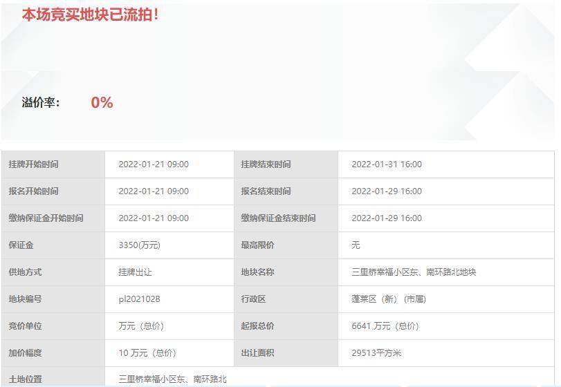 乐居买房讯 姜磊 继1月30日,烟台首宗租赁住房用地“无人认领”后,1月31日,烟台蓬莱区又有两宗住宅用地双双流拍。