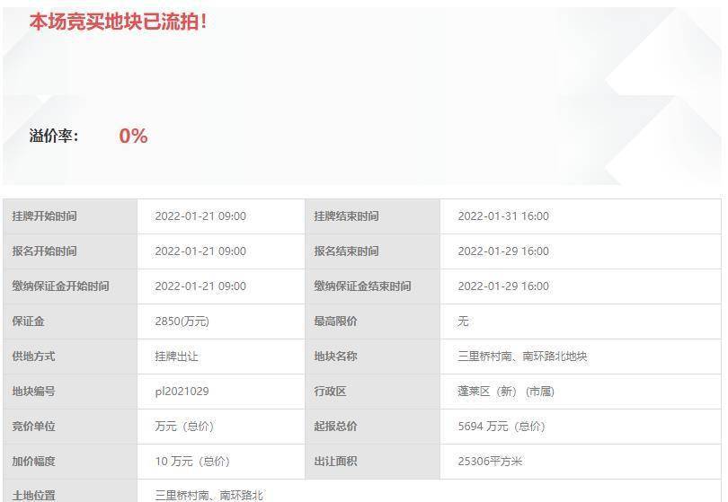 其中,山东路西、新港路南地块于1月6日,由烟台海芙瑞置业有限公司(金桥集团)以底价9231万元摘得,首进蓬莱;富民路南、钟楼南路东地块于1月22日,由蓬莱华隆房地产开发有限公司以底价11088万元获取。