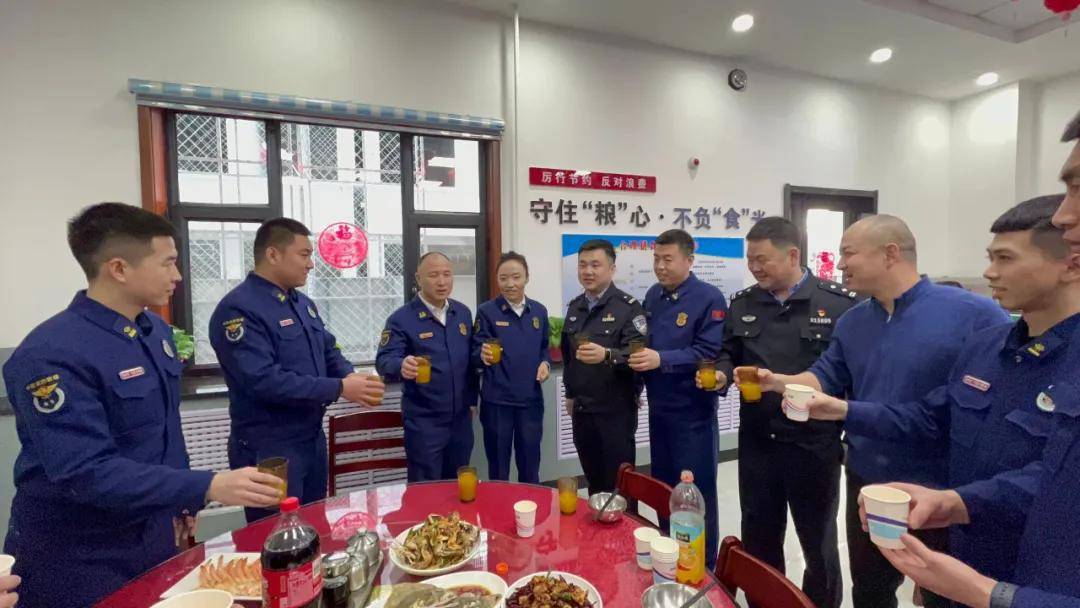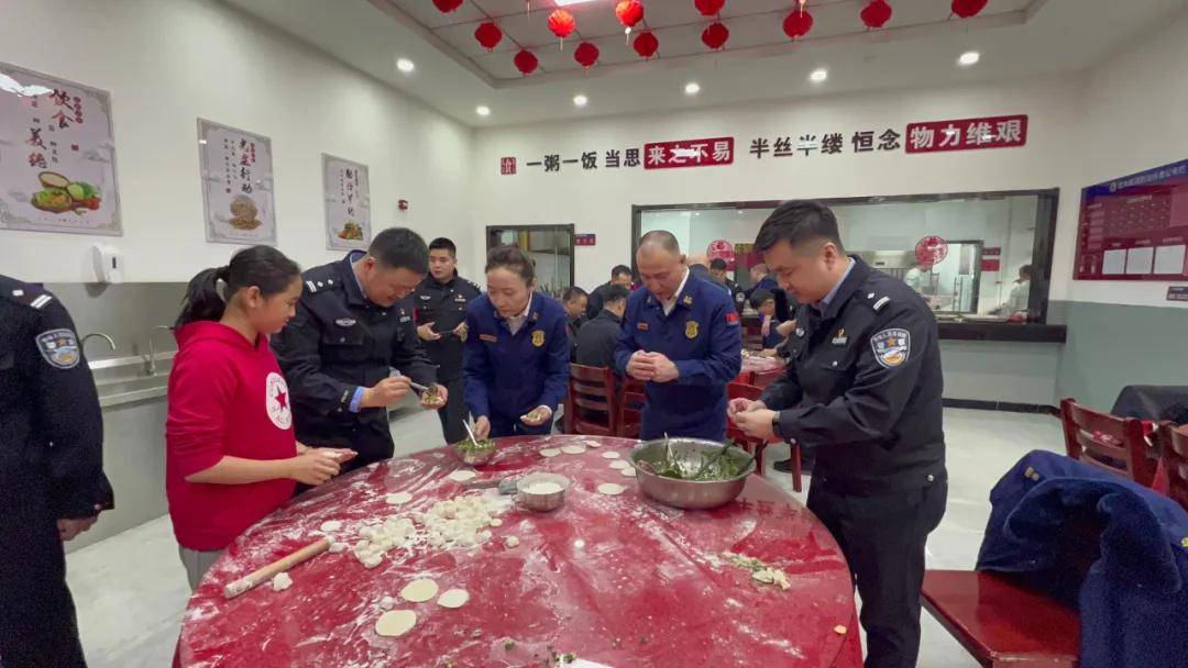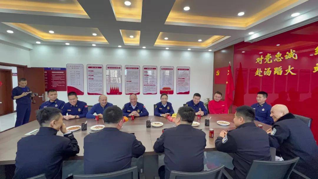 座谈会上,公安民警和消防救援人员共叙情谊、共话发展。随后向春节期间奋战在执勤岗位上的消防救援人员进行慰问并一同包饺子。