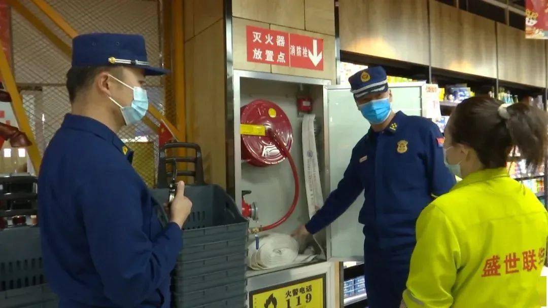 上午 10时许,天祝藏族自治县消防救援大队大队长王龙和初级专业技术职务岳靖弢就来到天健广场的盛世联华超市,进行消防安全监督检查。