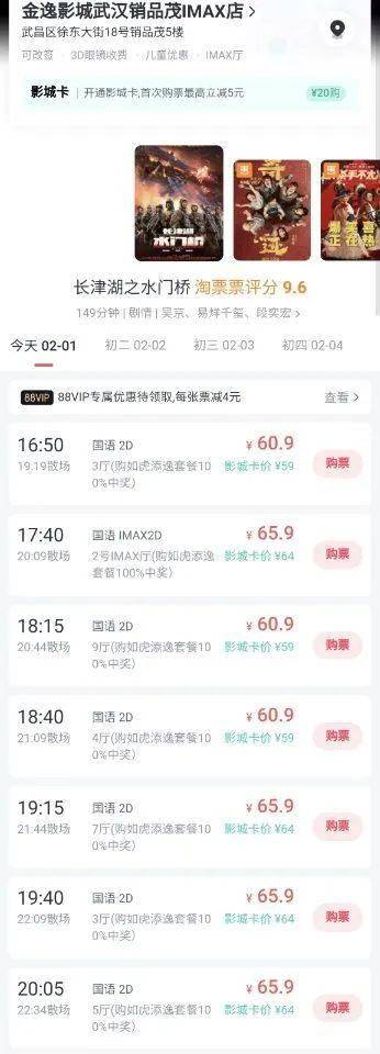 此外,今年春节档票价继续大涨。根据灯塔专业版开放的2月1日~2月3日的预售数据,平均票价分别为58.3元、58.8元和59.3元, 其中《长津湖之水门桥》的平均票价达到了60元以上。