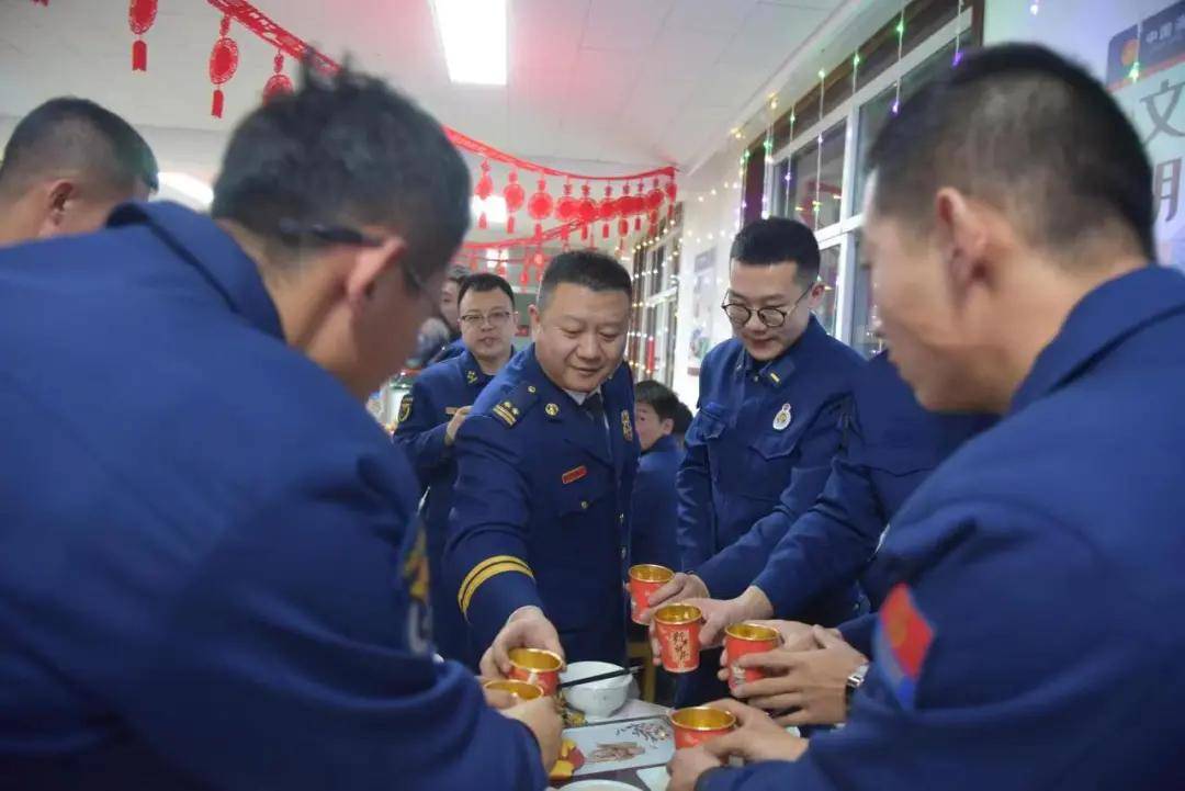 随后,齐志兵政委步入食堂,与一线消防救援人员及家属共进团圆饭,发放新春红包,亲切询问消防员及家属的日常生活、工作及家庭情况,代表支队党委发表了热情洋溢的新春致辞,向全体消防救援人员及家属致以诚挚的问候和新春祝福,感谢消防员家属们对消防事业的支持与奉献,勉励全体消防救援人员要继续不忘初心、牢记使命,以“信念之火”反复淬炼的政治定力,坚定职业自信、道路自信,扎根消防队伍,始终保持对消防救援事业的无限热忱,永远做党和人民的“守夜人”。