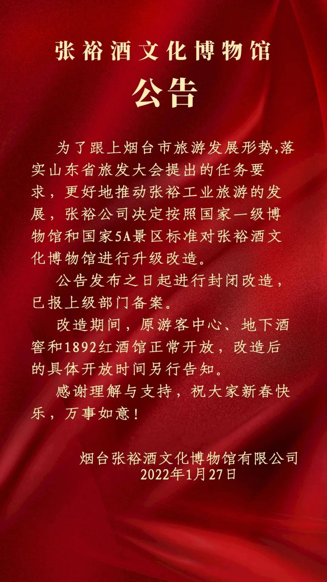 原标题:张裕酒文化博物馆将进行封闭升级改造
