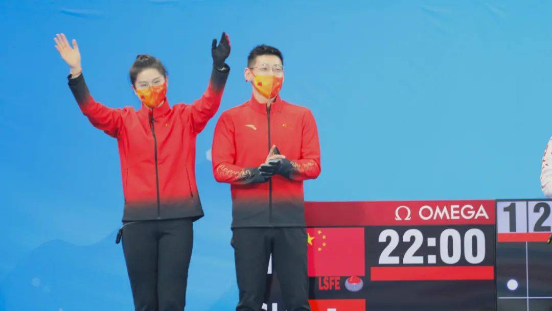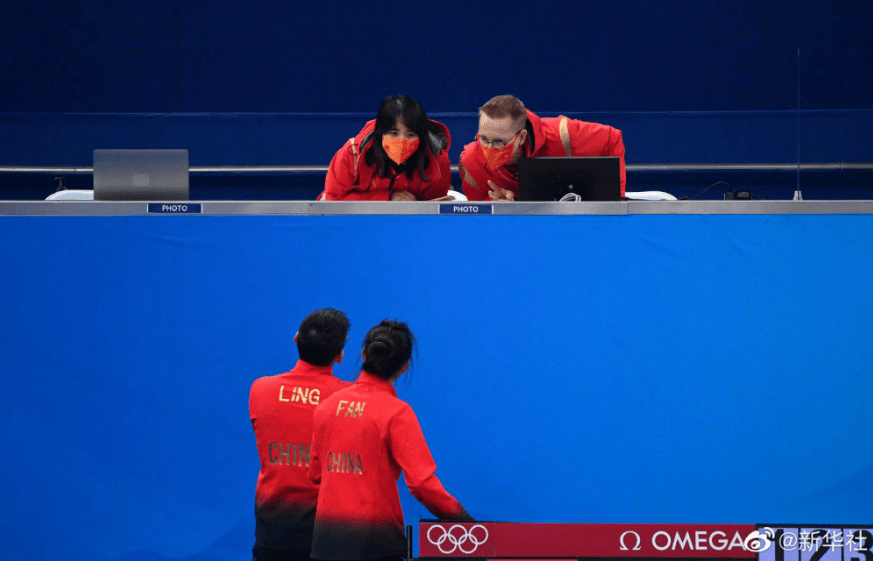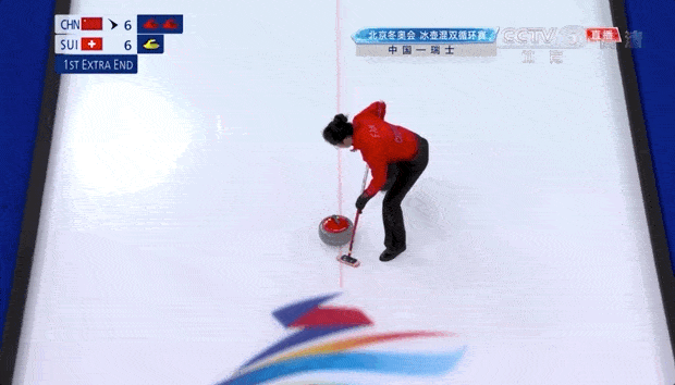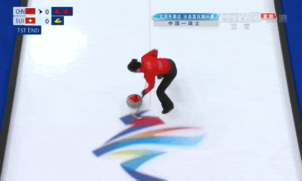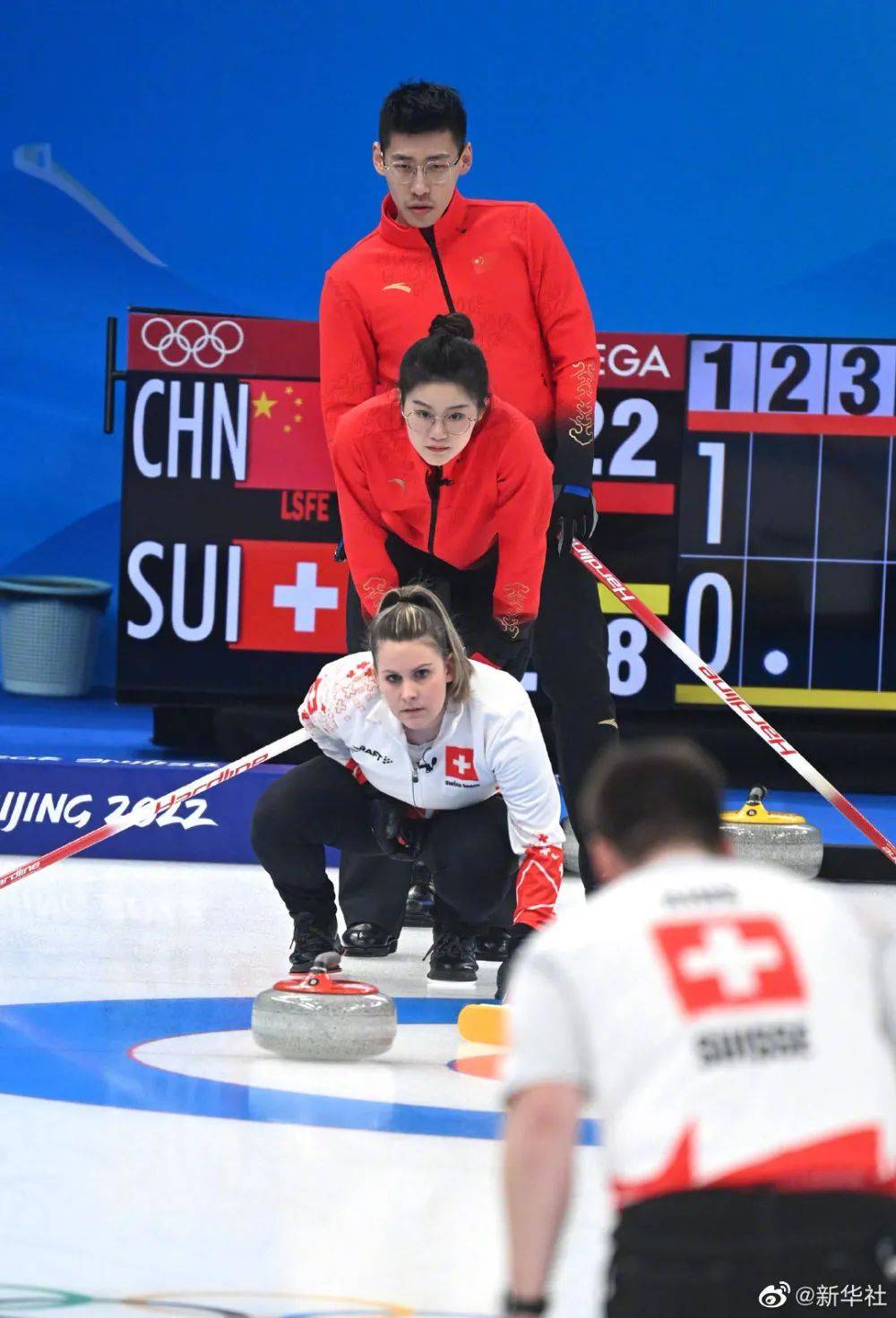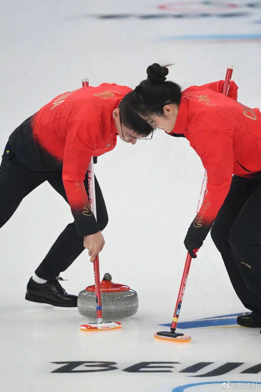 2月2日,中国冰壶队范苏圆(左)和凌智在比赛中。新华社记者 刘续 摄
