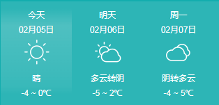 烟台市区:今天下午到明天白天,晴转多云;西到西北风4-5级转3-4级;最高气温0℃,最低气温-5℃。