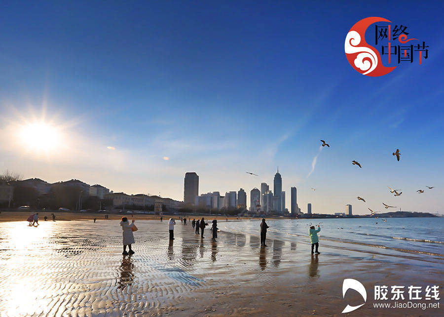 烟台的虎年春节,安静,祥和,空气清新。不少市民来到市区第一海水浴场,面朝大海,沐浴阳光,与海鸥为伴,享受这片烟台蓝。(摄影/李刚)
