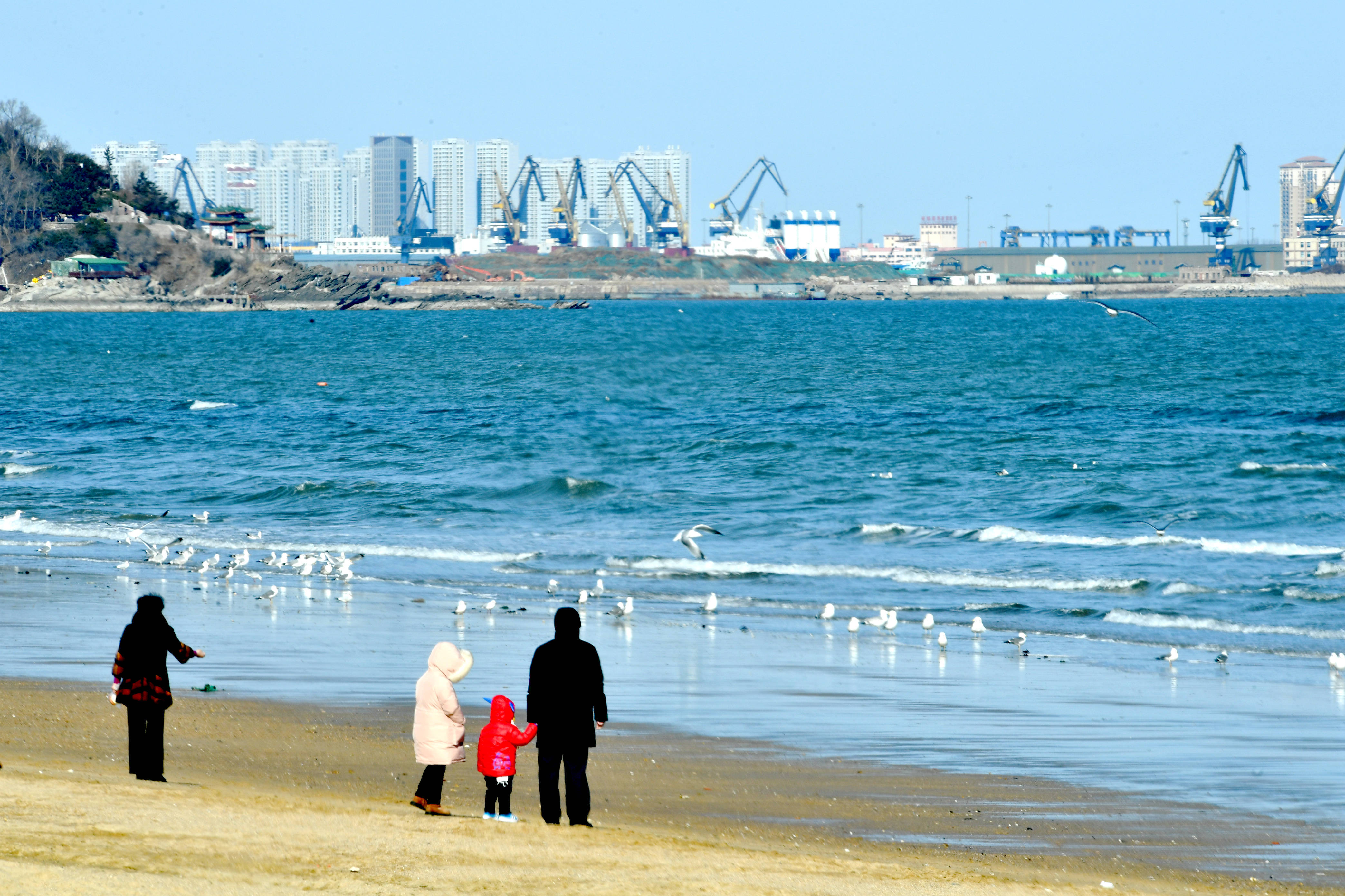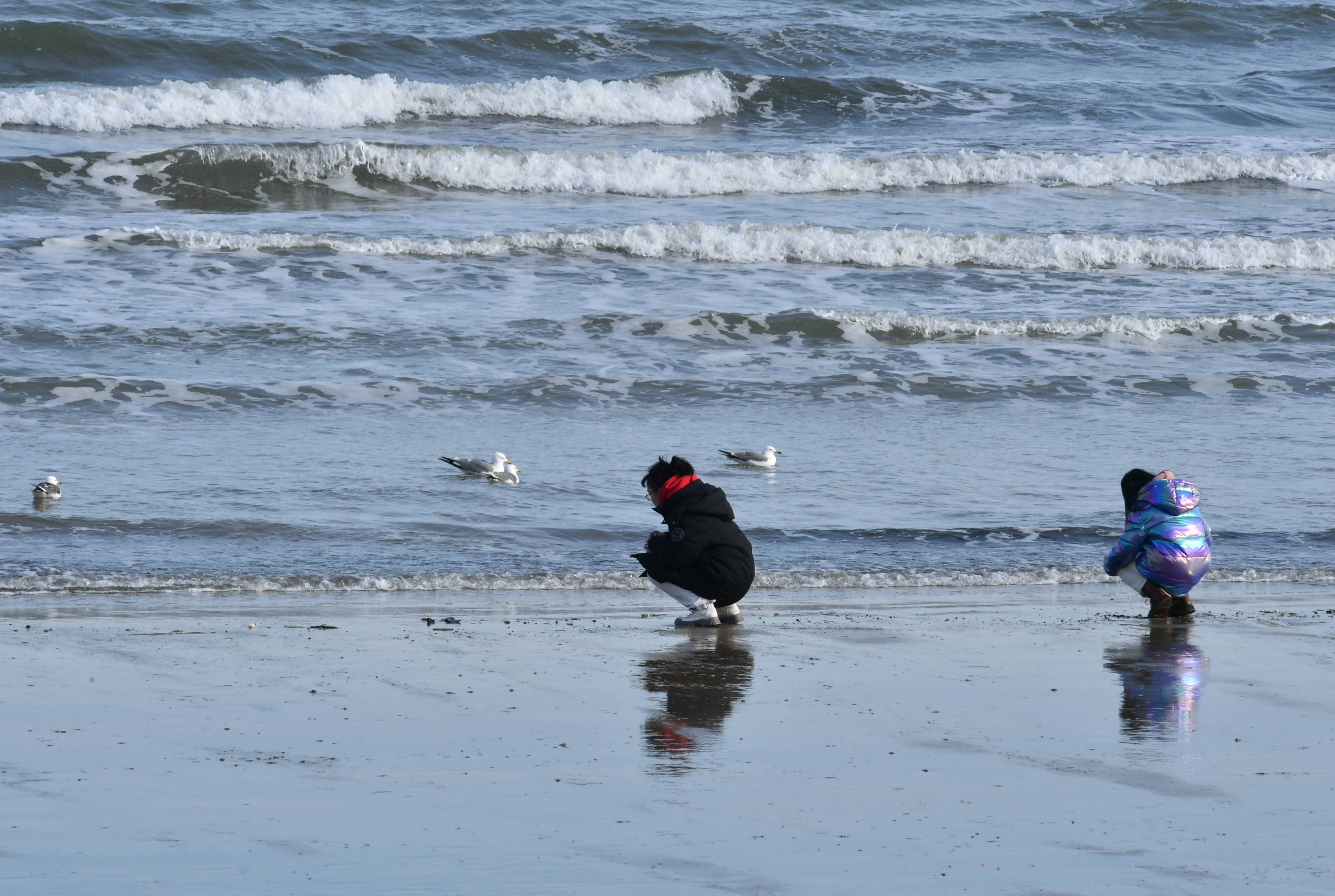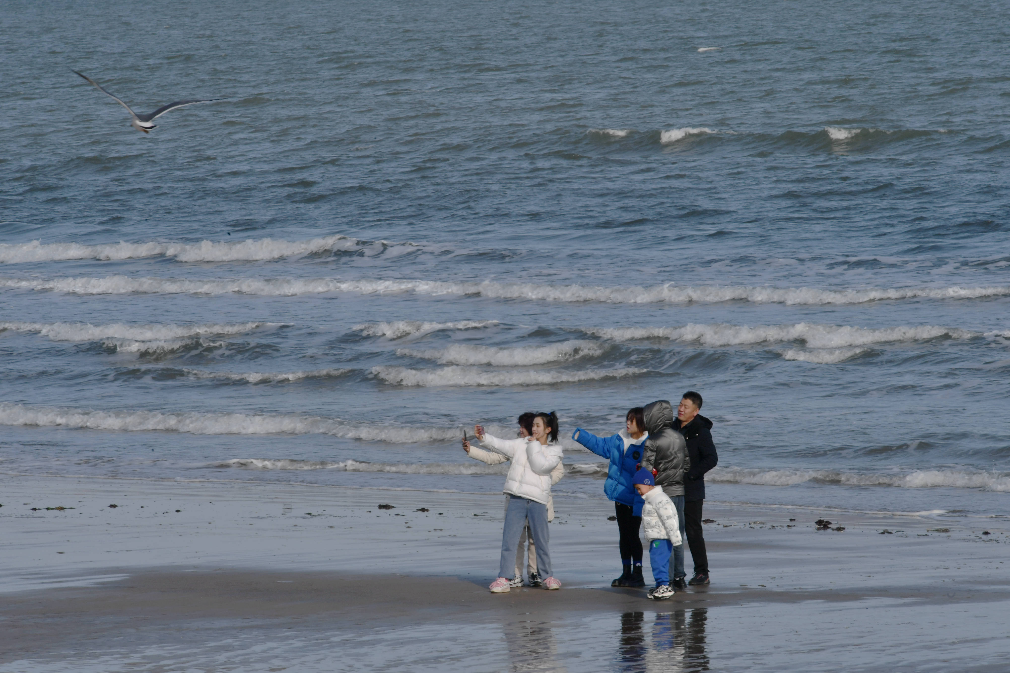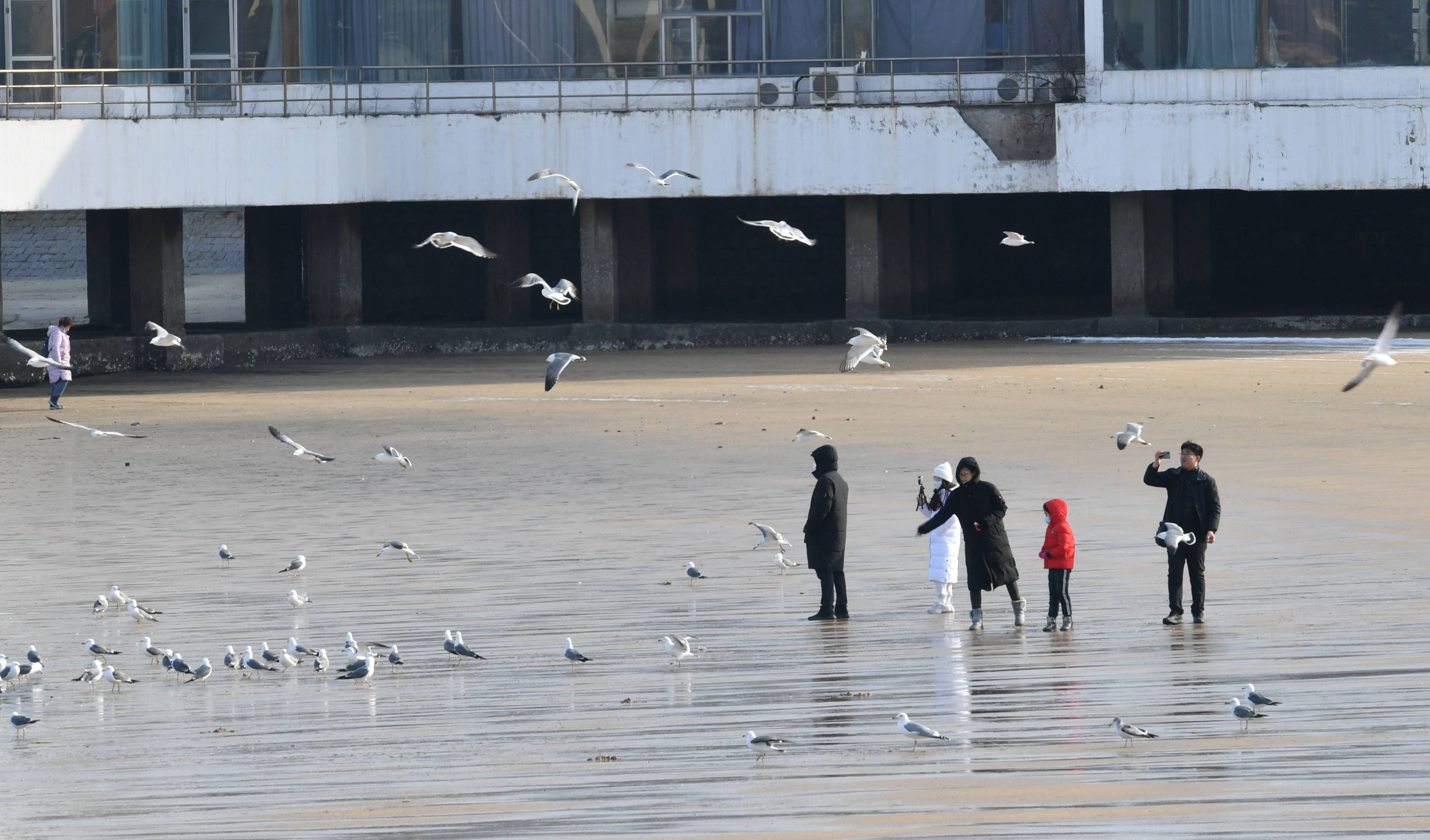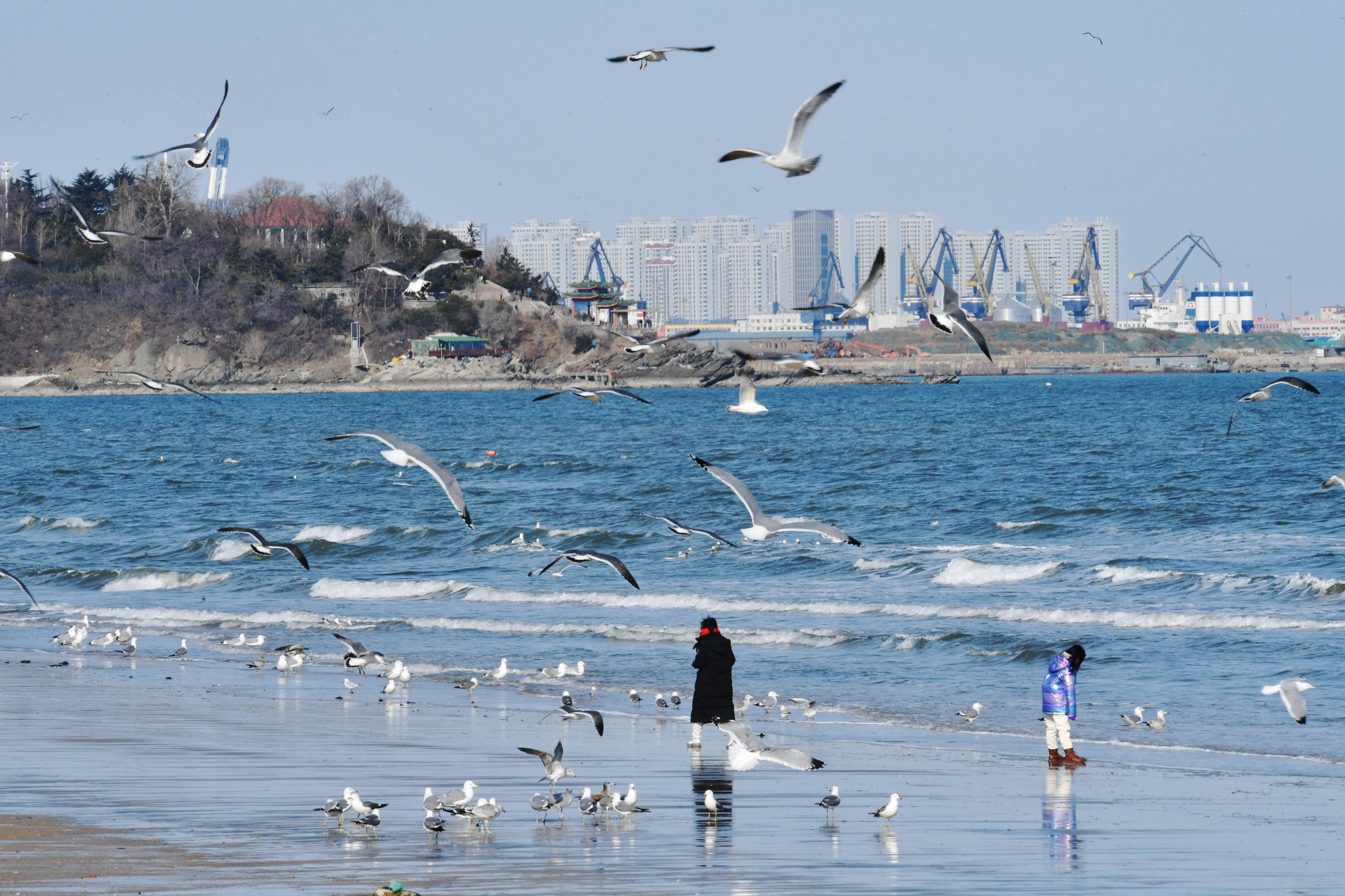 2月6日,农历正月初六,是春节长假的最后一天。烟台第一海水浴场的海边上成群的海鸥在海水中嬉戏,晴朗的天空、碧蓝的海水吸引了不少游客驻足。