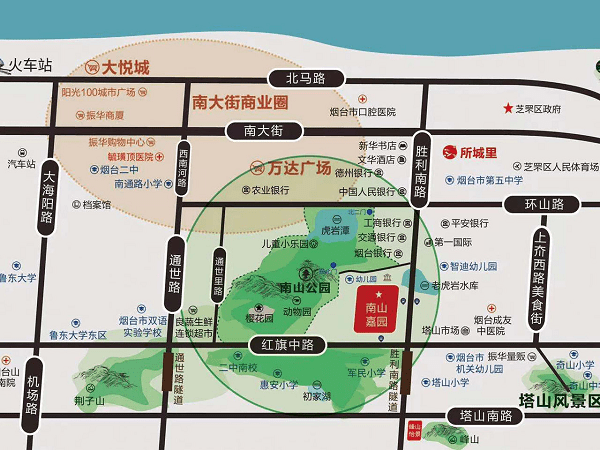 周边的配套醇熟,除了小区自带的一所1800㎡的公立幼儿园外,附近还有烟台市级机关幼儿园,智迪幼儿园,塔山小学和烟台五中。另外,南山嘉园周边6公里范围内有4家医院,烟台成友中医院、烟台中大肛肠专科医院、烟台毓璜顶医院、烟台山医院,可以说是,实力雄厚,就医无忧。