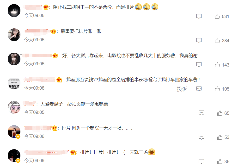 在下调电影票价的消息下方,大多是网友们吐槽排片的时间问题。