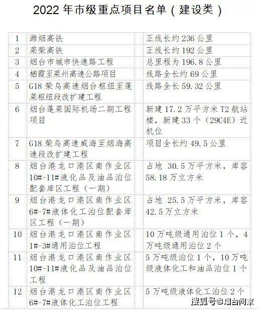 最近,烟台市发展和改革委员会印发了2022年市级重点项目(建设类)名单。