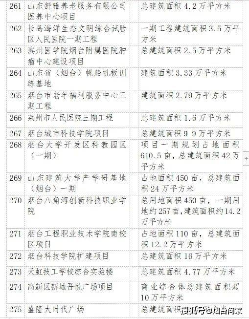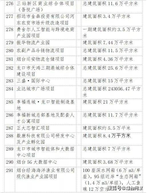 除此之外,烟台全民健身中心、三站新区吾悦广场、幸福新城的三盛国际中心、内夹河综合整治等均被列为重点项目。