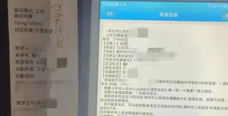 近日,莱州交警大队在沙河镇金沙市场对一辆鲁FE77*Y的小型轿车检查时,发现该驾驶员面部通红,口中散发着酒气,有酒驾嫌疑。执勤民警立即对其进行呼气式酒精含量检测,结果为55mg/100ml,属于酒后驾驶机动车。大队民警依法对其进行查处。