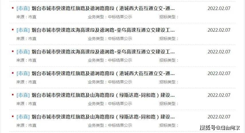 1、烟台市城市快速路红旗路及德润路南段(港城西大街互通立交-通林路)建设工程(一期)设计;快速路德润路南段(港城西大街互通立交)建设工程设计中标公告。
