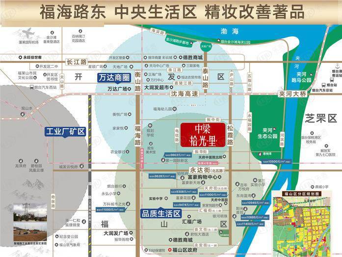 烟台中梁拾光里项目位于福山区松霞路与振中街交汇处以西、天府中医院以北,由烟台梁宸地产开发有限公司开发建设,总占地面积约4.2万方,总建筑面积约11.5万方,绿化率35%,容积率约为2.0。