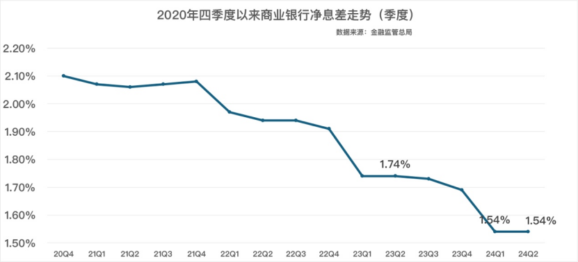 金融监管总局数据显示,截至今年二季度末,商业银行净息差为1.54%,与上季度末持平。