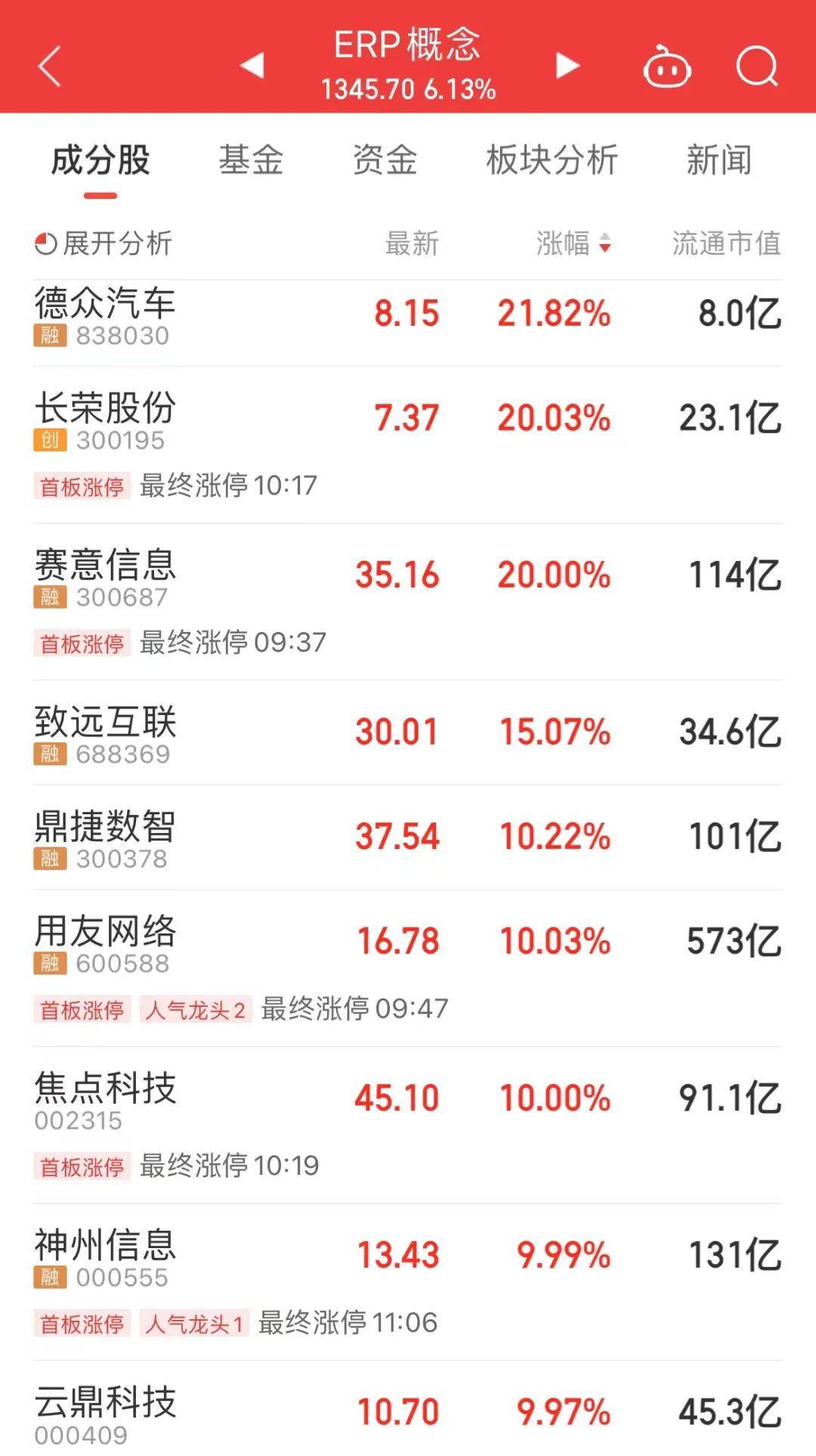 今天上午,AI应用端大涨,赛意信息、旋极信息、鼎捷数智等概念股大涨。