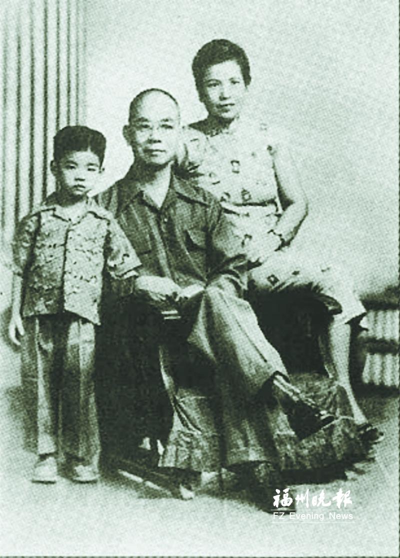1949年中秋节,吴石与妻子王碧奎、小儿子健成合影于台北。