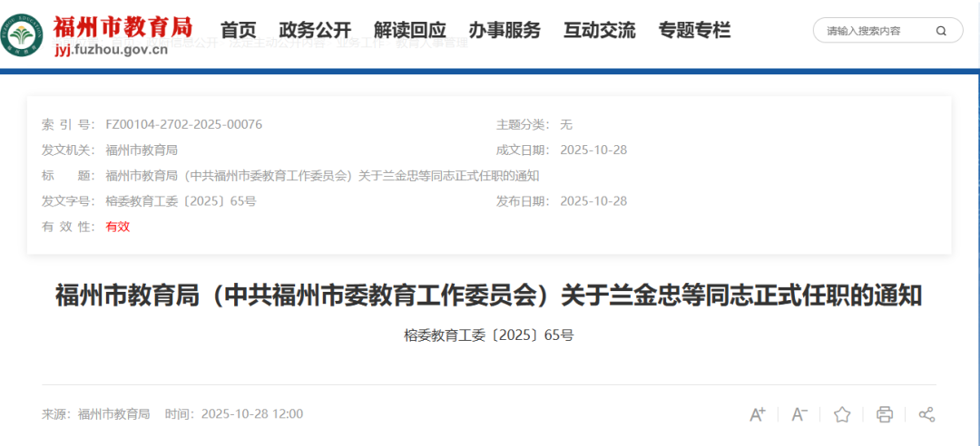 福州市教育局发布最新通知,福州多所学校多位校领导正式任职。