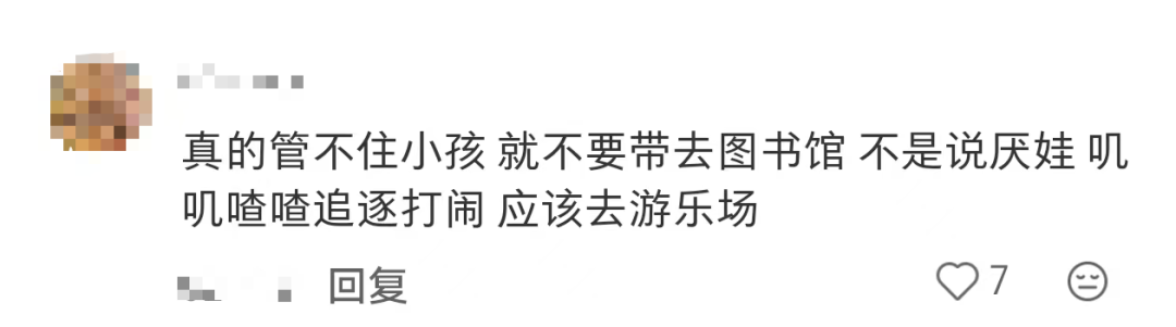 有网友吐槽:“与其说是图书馆倒不如说是托儿所,管不住孩子的家长,就不要带孩子去图书馆。”