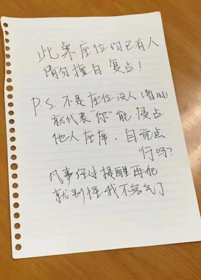在图书馆里,你是否有过“座怒症”?总有桌上摆着水杯、放着平板,但你仔细观察,一天下来似乎都不见人!更有甚者,一张纸条占领一整张桌子,写着“此桌座位均已有人,请勿擅自复占”。
