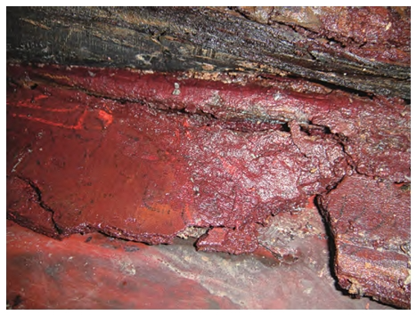 此外,从出土位置观察,海昏侯墓出土锁绣在南回廊的漆箱残片上和棺板正面上。从颜色上观察,经两千余年依旧艳丽,未见褪色之状。侧面反映了海昏侯这一显赫墓主生活的片段。