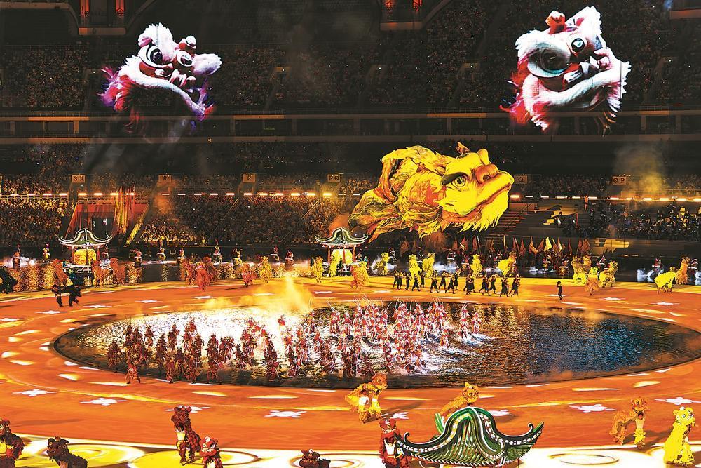 香港知名艺人刘德华(白衣者)献唱开幕式。