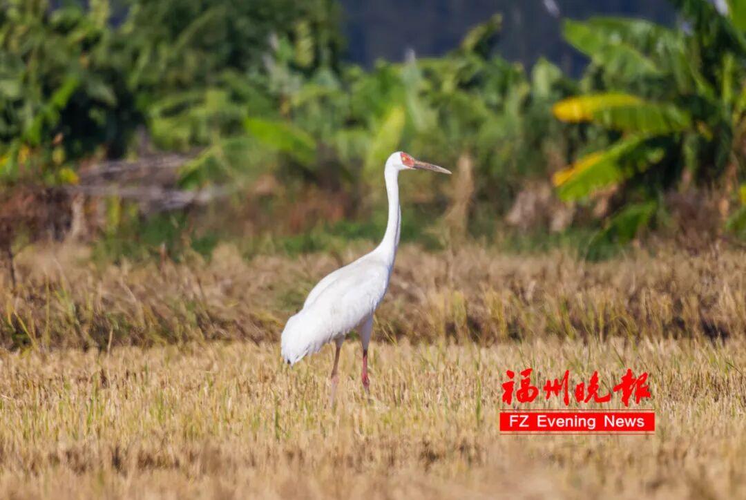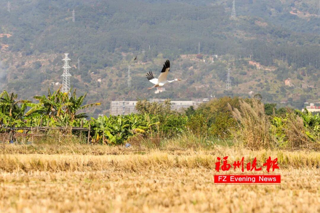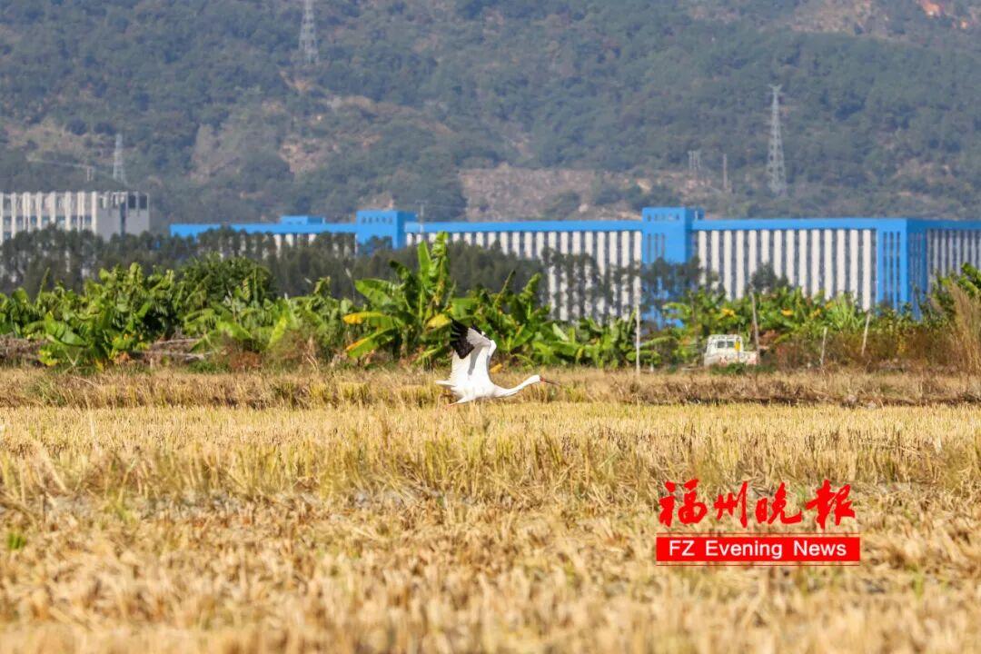 天渐冷,候鸟至!近日,福州连江县东岱镇山堂村迎来了“鸟中大熊猫”、世界极危物种白鹤。