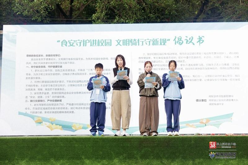 闽侯县祥谦初级中学党支部书记、校长赵春灯希望家长以今天的活动为起点,和孩子一起学习食安与骑行知识,积极参与到家校共建中和学校携手共织 “食安+行安”守护网。