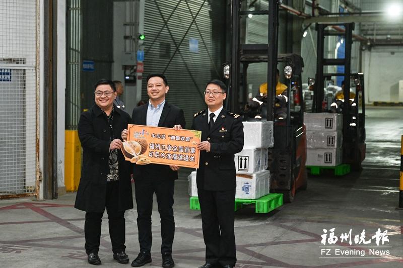 福州口岸全国首票印尼冷冻榴莲通关仪式。